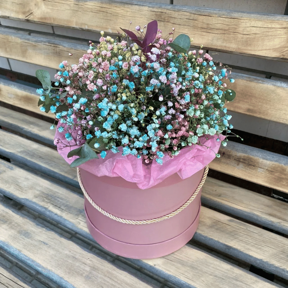 Гипсофила, окрашенная в разные цвета (голубой, розовый, лавандовый)
