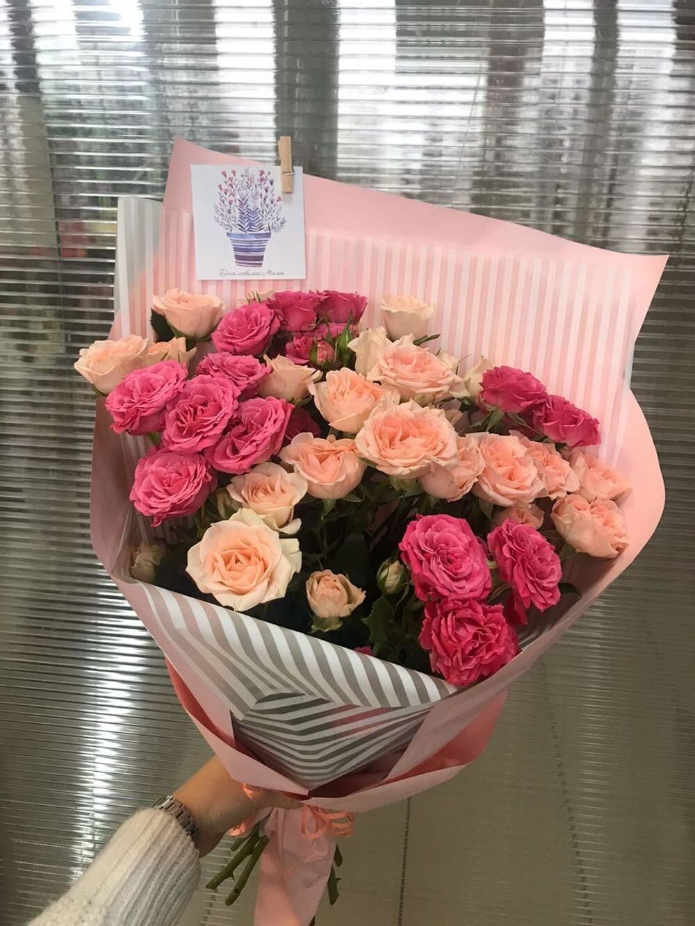 Кустовые розы розового и персикового цвета